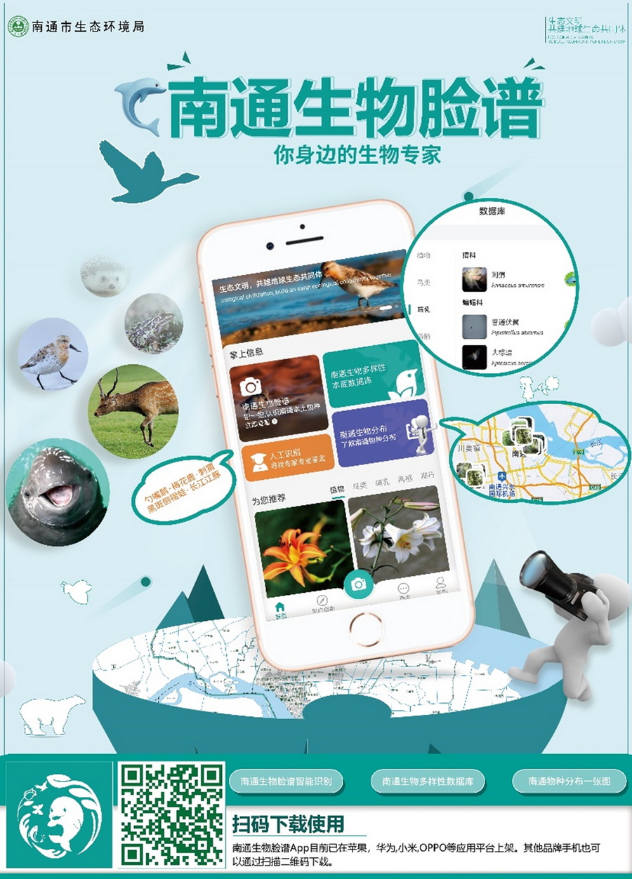 近日,生態環境部科技與財務司公告了“生態環境科技成果科普化典型案例和優秀科普作品”。由江蘇省生態環境廳指導、南通市生態環境局委托、南大環規院自然生態所和大氣環境與信息化研究所聯合設計開發的“南通生物臉譜APP”,喜獲十佳典型案例。