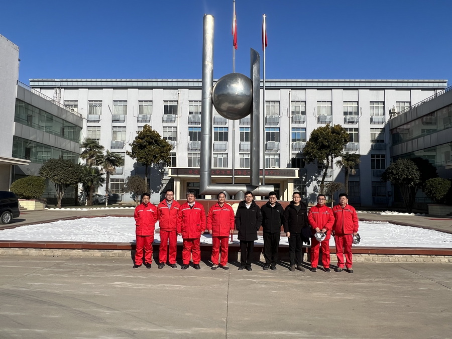 在中石化中原油田油氣加工技術服務中心,調研組參觀了國內首個兆瓦級質子交換膜(PEM)電解水制氫示范項目,并與中心黨委書記魏忠昕、相關技術專家圍繞綠氫行業發展、PEM穩定運行和創新技術轉化合作等方面開展了深入探討,并達成合作共識。