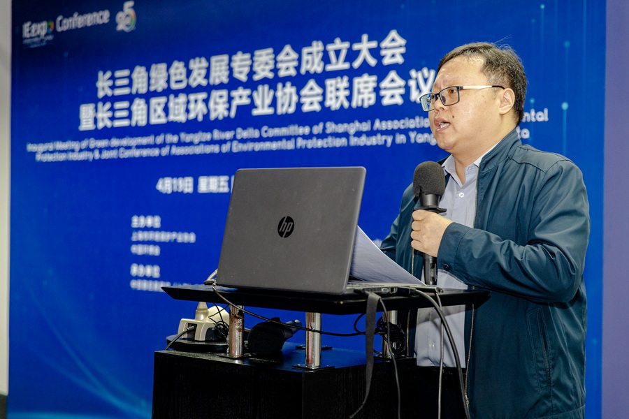 4月19日,上海市環境保護產業協會長三角綠色發展專委會成立大會在25屆中國環博會期間舉辦。上海市生態環境局綜合規劃處處長魏峻、四級調研員唐煒,長三角示范區執委會生態規建部副部長李程,長三角區域環保產業協會領導、省市環科院領導蘇國棟、陳志鵬、尹文德、伏晴艷、張瀏、張磊,南大環規院董事長吳俊鋒等領導,以及上海建工集團、江蘇省環保集團、安徽省環保集團、浙江環科等30家專委會成員單位代表參會。