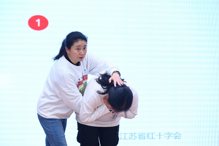 在急救操作演練中,心肺復(fù)蘇、心肺復(fù)蘇儀(AED)、人工呼吸等急救技能的訓(xùn)練更加貼近實(shí)際應(yīng)用場景。省紅會老師和南大紅會的志愿者針對每位員工的操作手法進(jìn)行了細(xì)致專業(yè)的指導(dǎo),確保每一個動作都準(zhǔn)確到位,讓員工在關(guān)鍵時刻能夠真正發(fā)揮急救作用。